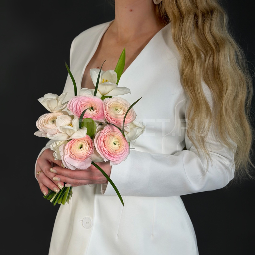 Букет невесты из тюльпанов, ранункулюсов и гвоздик