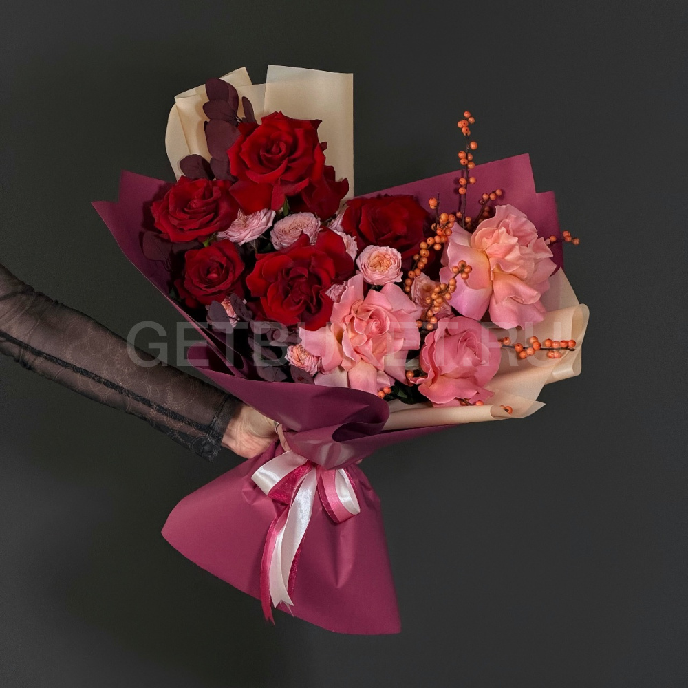 Возможны минимальные отличия букета от фотографии и допустимы отличия по цветовой гамме, так как цветы являются природным материалом и собираются вручную