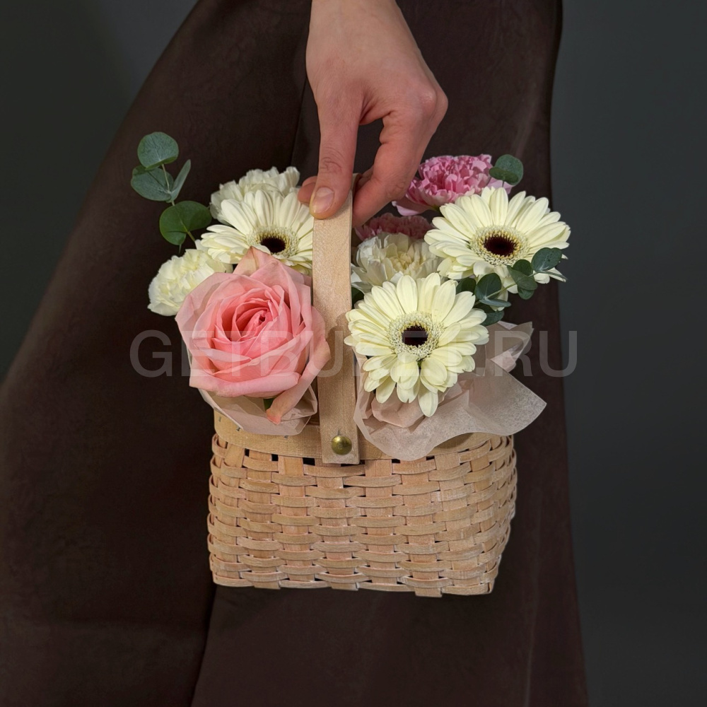 Цветочная корзина из гвоздик, гербер и розы