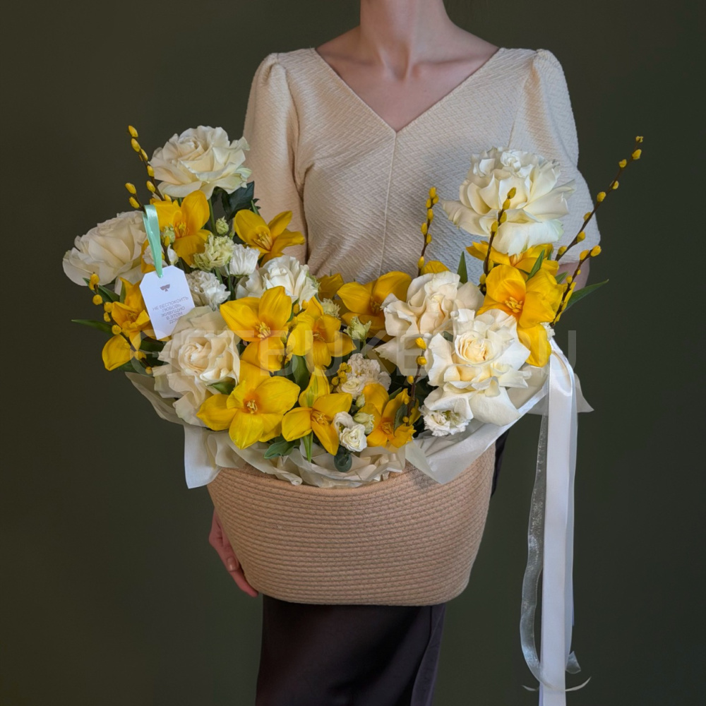 Возможны минимальные отличия букета от фотографии и допустимы отличия по цветовой гамме, так как цветы являются природным материалом и собираются вручную