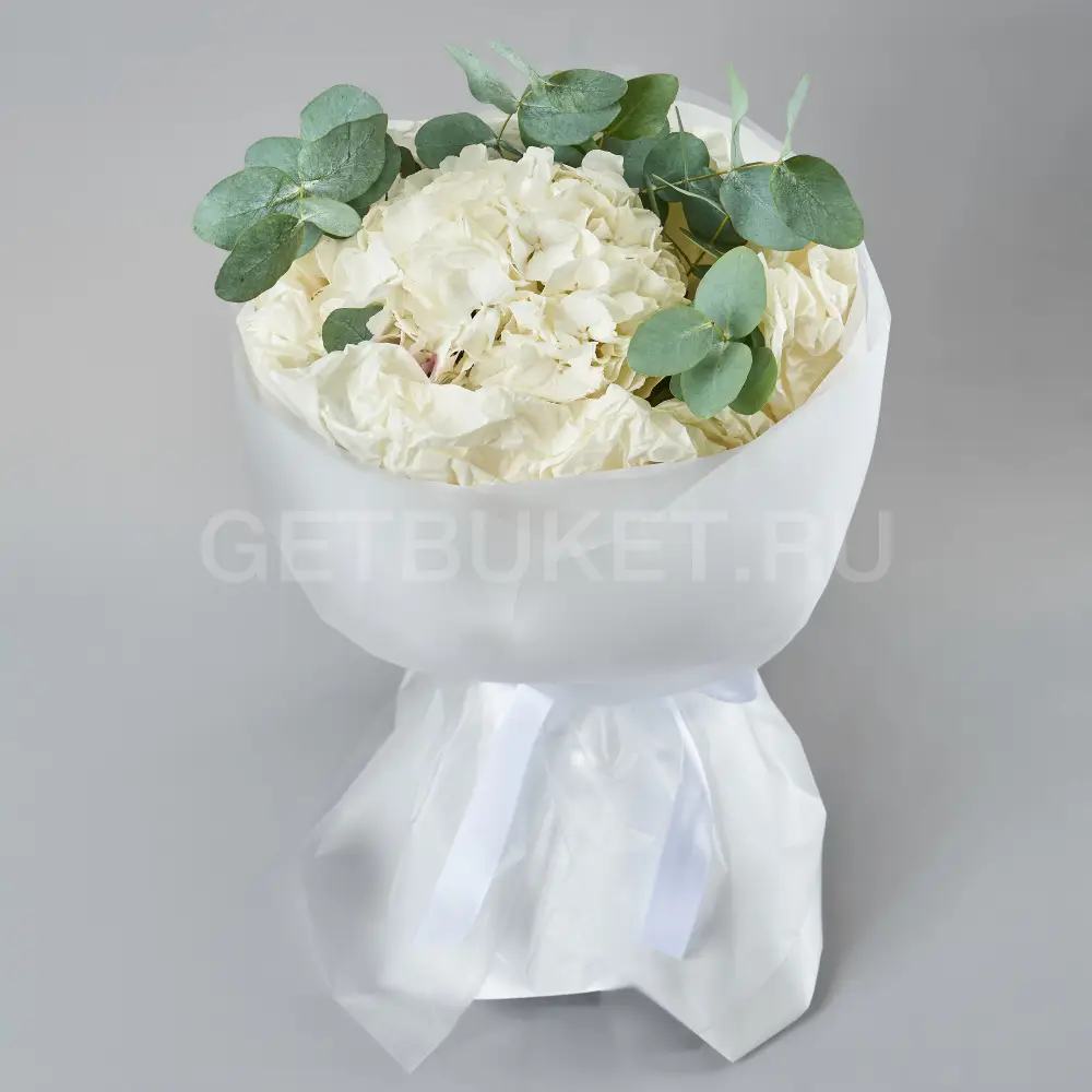 Букет из белой гортензии с эвкалиптом