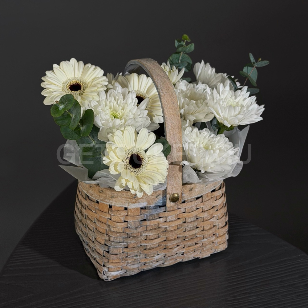 Возможны минимальные отличия букета от фотографии и допустимы отличия по цветовой гамме, так как цветы являются природным материалом и собираются вручную