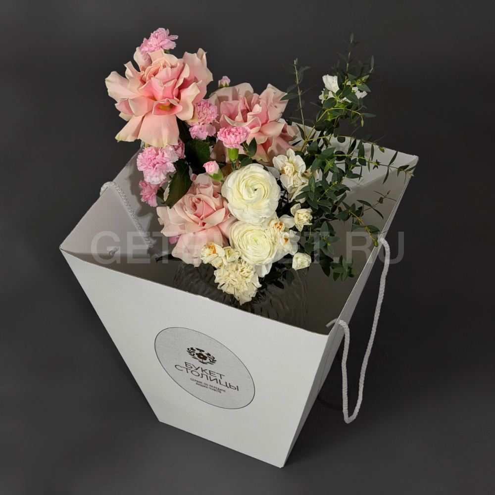 Возможны минимальные отличия букета от фотографии и допустимы отличия по цветовой гамме, так как цветы являются природным материалом и собираются вручную