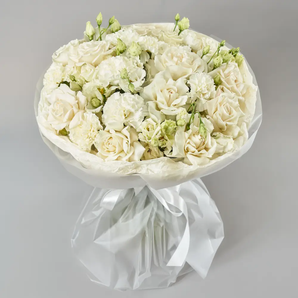 Букет из белых роз, гербер и хризантем с альстромерией8 150Букет из белых роз, гербер и хризантем с альстромерией 8 150 -